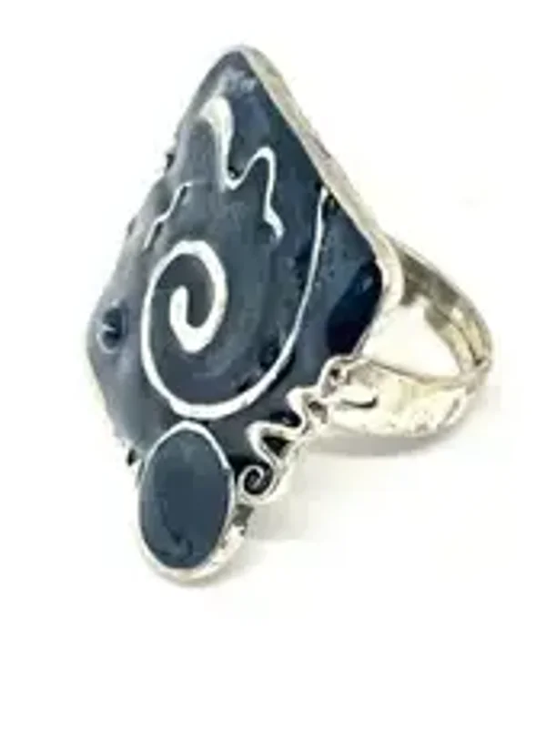 Bague Ethnique Gothique métal argent vieilli Bleu nuit céramique