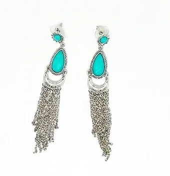 Coloris Turquoise pierre et pampilles chainettes métal argent pour femme