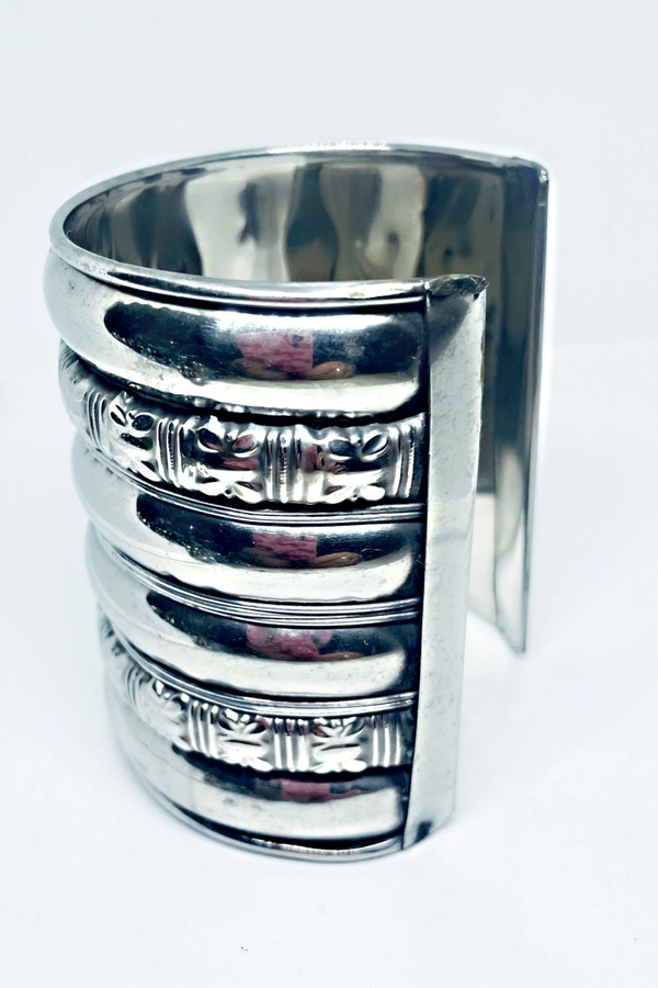 Bracelet manchette Large ciselé ethnique - Coloris argent pour Femme - LOLA