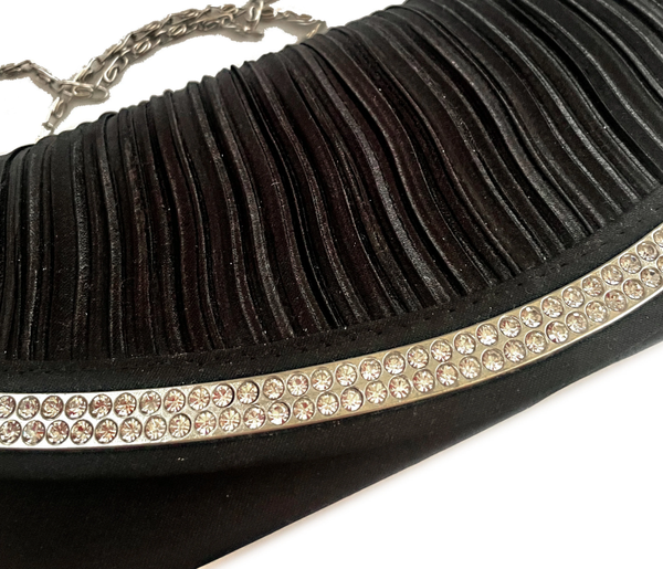 Pochette du soir femme noire , soirée, mariage, rigide avec Strass et plissé JOA