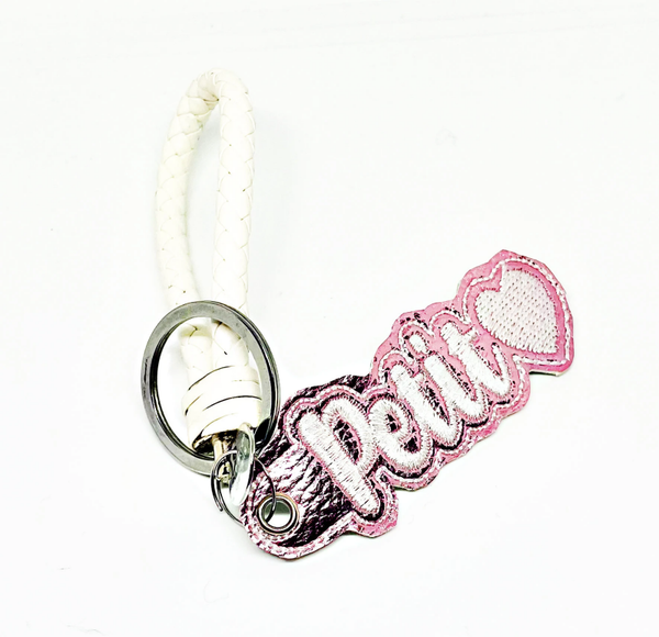 Porte clé rose à messages Petit Coeur en métal argent et Pvc nacré - FATIA