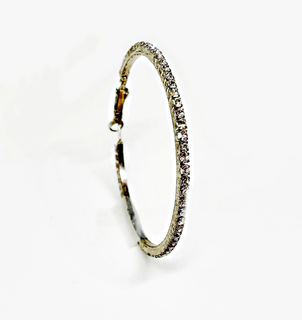Boucles d'oreilles créoles anneaux en strass blancs fins métal argent pour femme LOLA