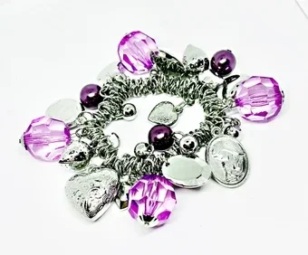 Bracelet à breloques, pampilles en aluminium perles et Coeur charms - élastique pour Femme -JELLY