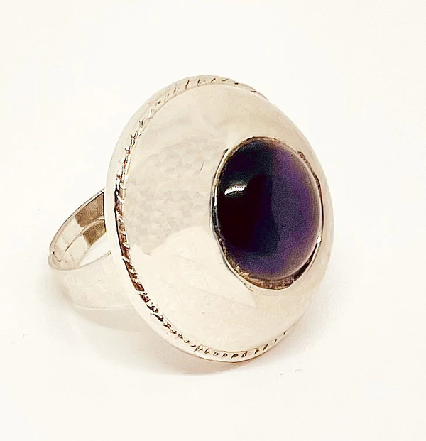 Bague Gothique ronde métal argent pierre violette Steampunk pour Femme Taille unique Sheila